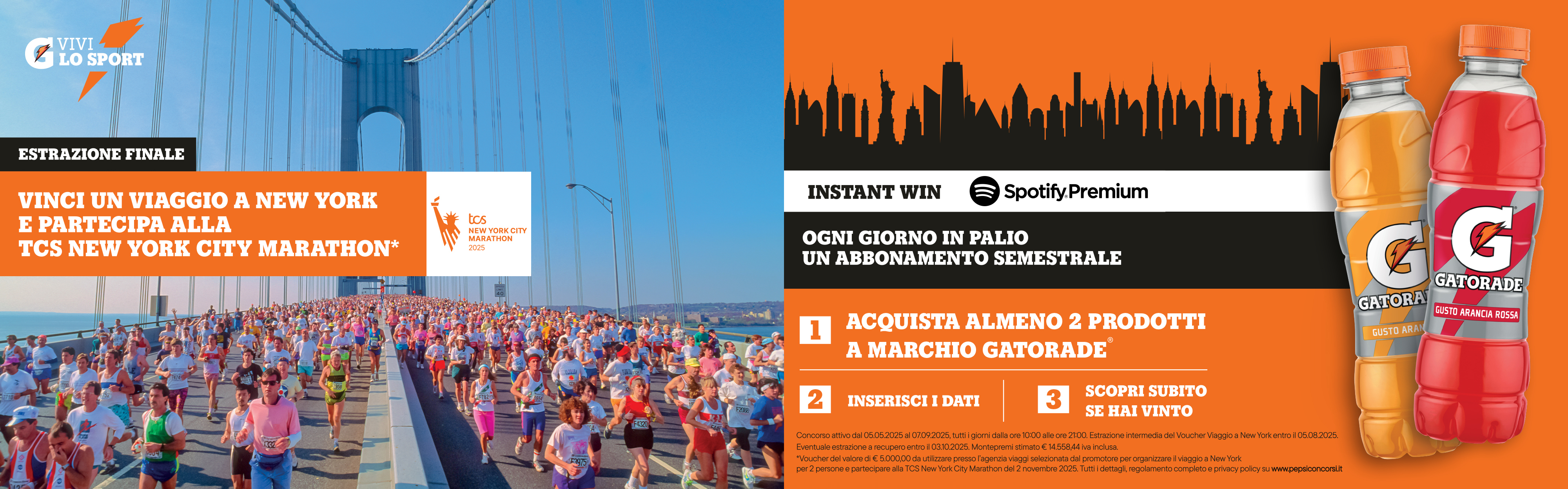 Fase di instant win attiva dal 05.05.2025 al 07.09.2025, fase di prenotazione per l’estrazione intermedia attiva dal 05.05.2025 al 03.08.2025. Consulta il regolamento ufficiale di seguito